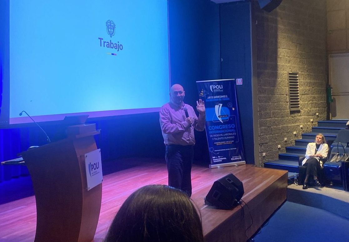 En el marco del sexto Congreso Internacional de Riesgos Laborales y Talento Humano, Organizado por El Politécnico Gran Colombiano, el cual fue llevado a cabo en las instalaciones de la universidad, La Dirección de Riesgos Laborales del Ministerio del trabajo fue invitada a hacer parte de la agenda del evento, con la participación de los Profesionales, Ingeniera Ginna Nohelia Cárdenas Millan, Coordinadora del Grupo de Análisis y monitoreo de la información y Diego Fernando Castellanos Contratista vinculado a la Dirección de Riesgos Laborales, en los espacios concedidos para cada intervención, la Ingeniera Ginna Cardenas nos habló del uso de la Inteligencia Artificial (IA) en seguridad y salud en trabajo (SST) “un futuro más seguro”..